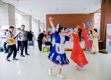 5月31日,“石榴籽 祖國(guó)行”新疆大學(xué)代表團(tuán)來到南開大學(xué)。在故事分享會(huì)上,王彥臣、李姝洋、迪力亞爾·迪力夏提同學(xué)向南開大學(xué)青年學(xué)子講述了“斷臂男孩”阿卜杜外力·阿卜杜拉、“黨徽大叔”阿布都加帕爾·猛德和“時(shí)代楷模”拉齊尼·巴依卡的故事。在文藝大舞臺(tái)上,新疆大學(xué)代表團(tuán)各民族同學(xué)通過展示新疆特色舞蹈“木卡姆”、民族器樂“庫(kù)布孜”,向南開大學(xué)師生展現(xiàn)大美新疆熱情好客、能歌善舞的地域特色。