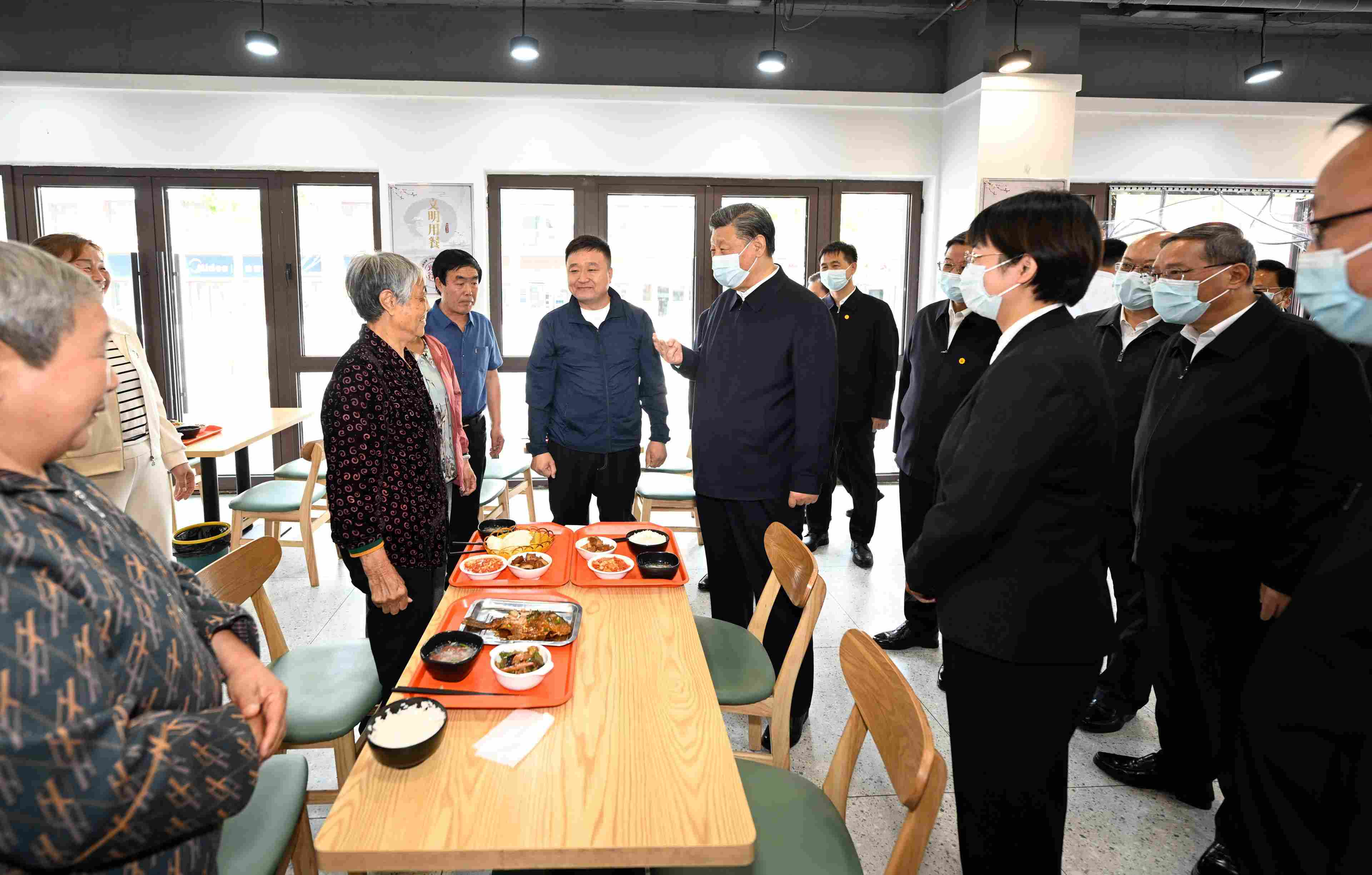 △5月10日,習(xí)近平總書記在河北省雄安新區(qū)考察,并主持召開高標(biāo)準(zhǔn)高質(zhì)量推進(jìn)雄安新區(qū)建設(shè)座談會。這是10日上午,習(xí)近平在容東片區(qū)南文營社區(qū)食堂同就餐的社區(qū)老人親切交流。