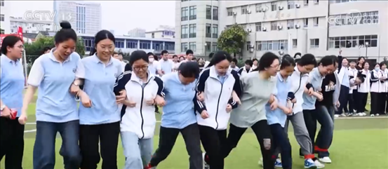 在浙江寧波寧??h知恩中學,學校為700多名高三學生組織了一場快樂迎考、趣味闖關(guān)活動。節(jié)奏輕快的竹竿舞、活潑有趣的“兩人三足”,讓同學們在游戲中放松心情。