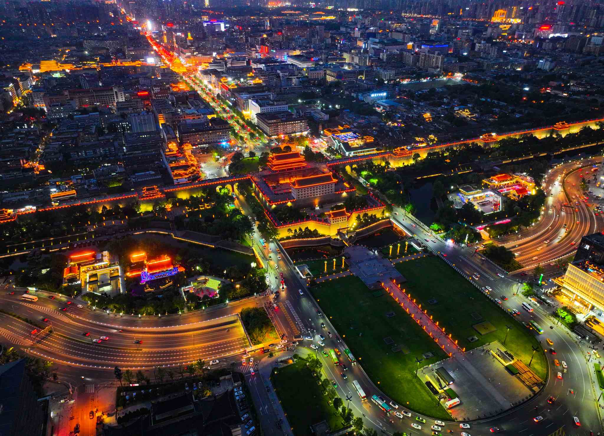 2023年6月8日,西安南門(mén)城墻及中軸線夜景。視覺(jué)中國(guó)