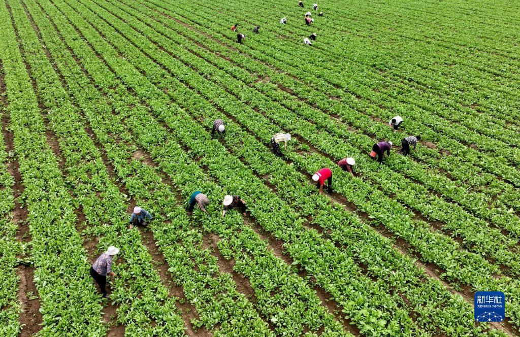 6月5日,在云南省麗江市玉龍納西族自治縣黃山街道長水社區(qū),菜農(nóng)在田里勞作。