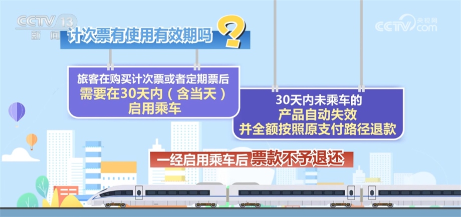 旅客在購買計次票或者定期票后,需要在30天內(含當天)啟用乘車,30天內未乘車的,產品自動失效并全額按照原支付路徑退款。一經啟用乘車后,票款不予退還。