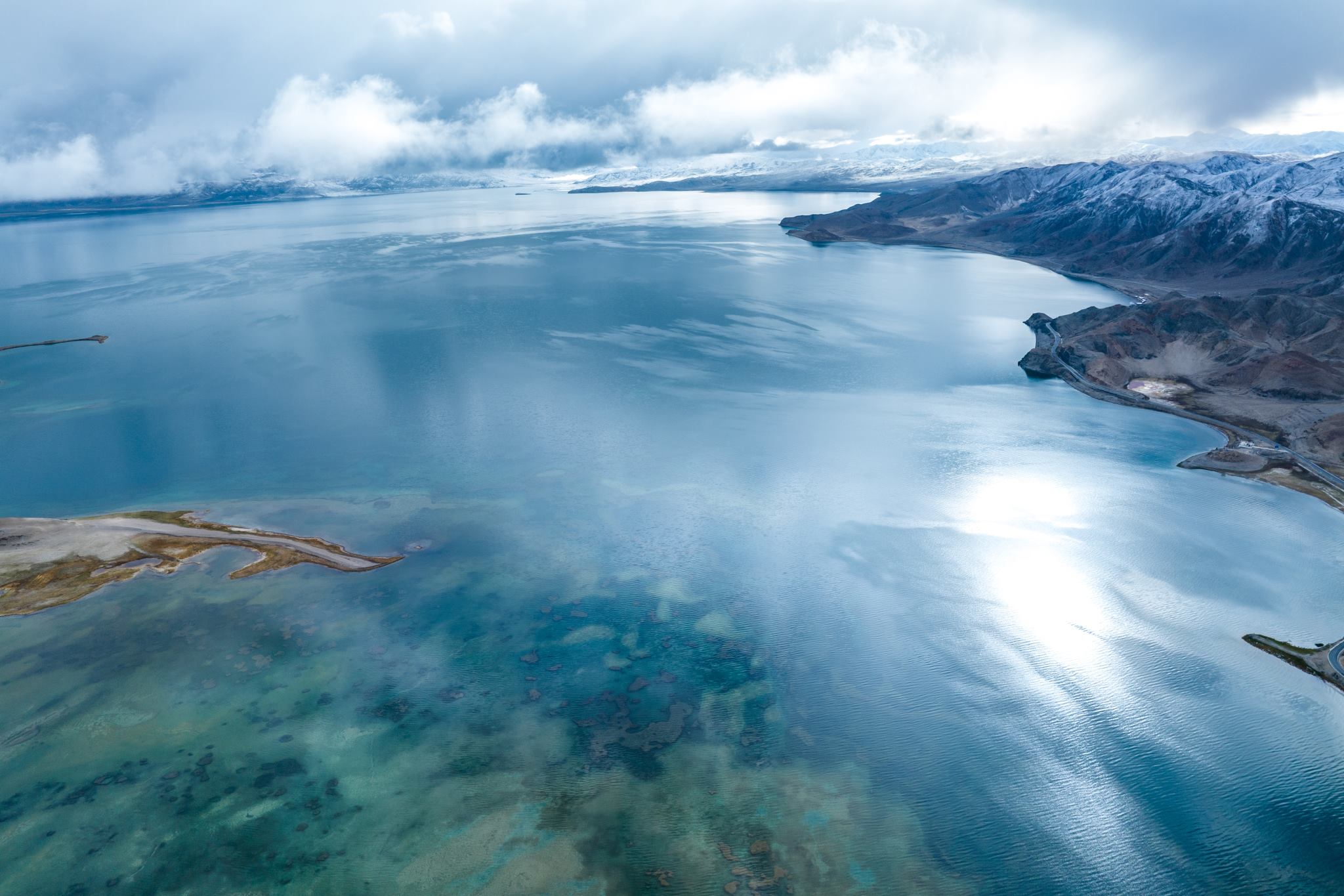 2023年6月6日,西藏阿里,日土縣班公湖,湛藍(lán)的湖水、潔白的雪山、奇特的沿湖景觀,構(gòu)成一幅夏日醉美畫卷。視覺中國