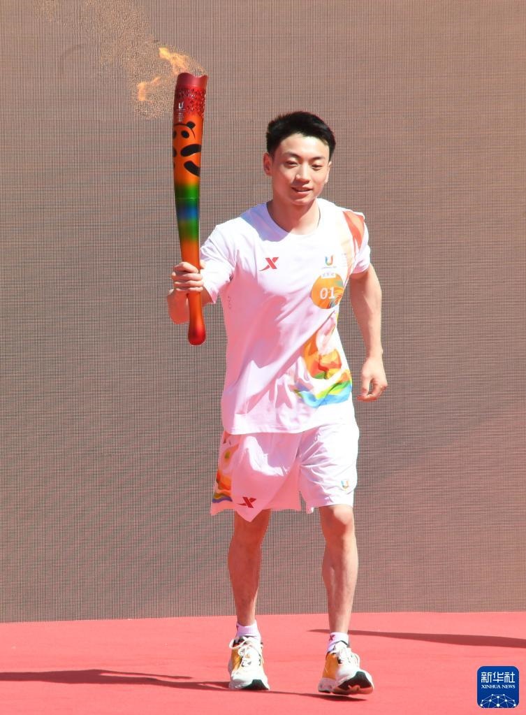 “大運(yùn)會(huì)火種是光明、團(tuán)結(jié)、友誼、和平的象征,代表了那些勇于挑戰(zhàn)高水平競(jìng)技體育并兼顧學(xué)業(yè)的青年大學(xué)生運(yùn)動(dòng)員們的技藝、勇氣和毅力?!眹?guó)際大學(xué)生體育聯(lián)合會(huì)代理主席雷諾·艾德在視頻致辭中說(shuō)。