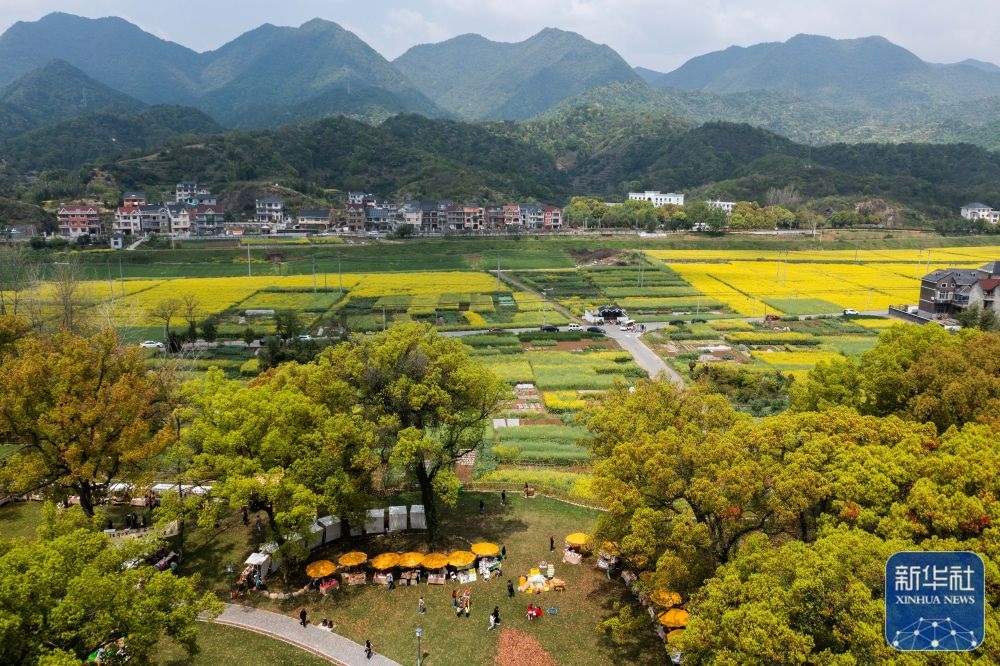 空中俯瞰浙江杭州市富陽區(qū)新桐鄉(xiāng)小桐洲村香樟公園和盛開的油菜花田(4月7日攝,無人機照片)。新桐鄉(xiāng)依托近萬畝盛開的油菜花田和美麗的富春江風景,開展特色鄉(xiāng)村文旅活動,做好美麗鄉(xiāng)村、美麗經(jīng)濟的文章,助力鄉(xiāng)村振興。新華社記者 徐昱 攝