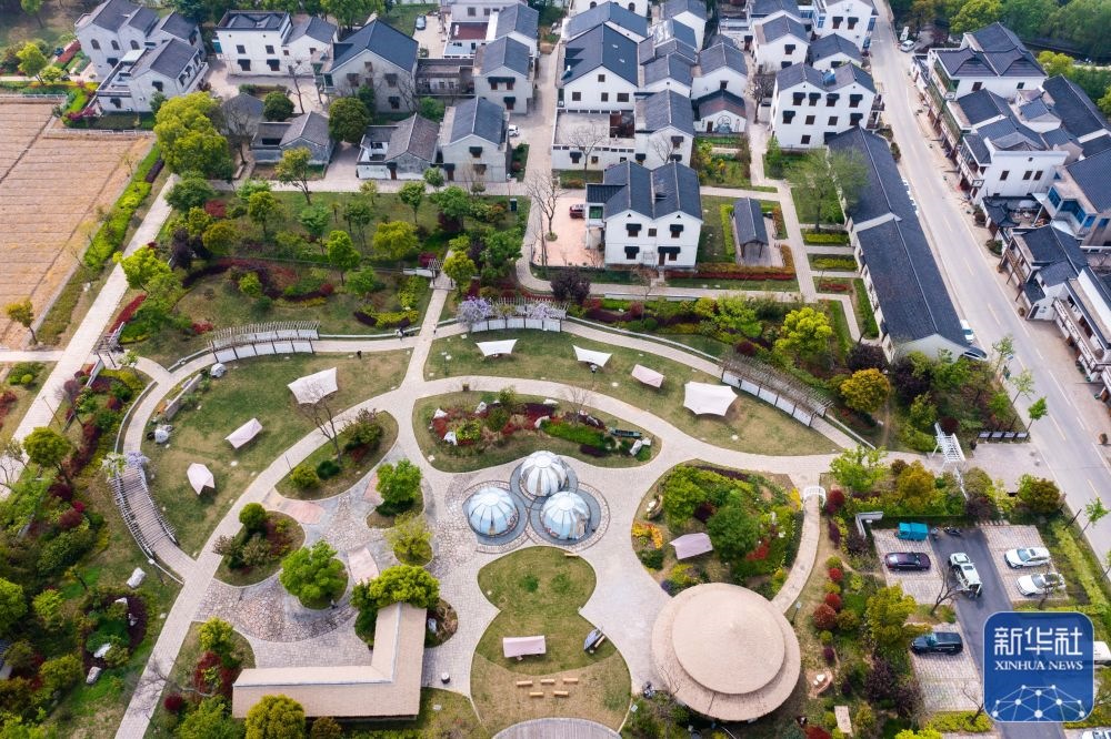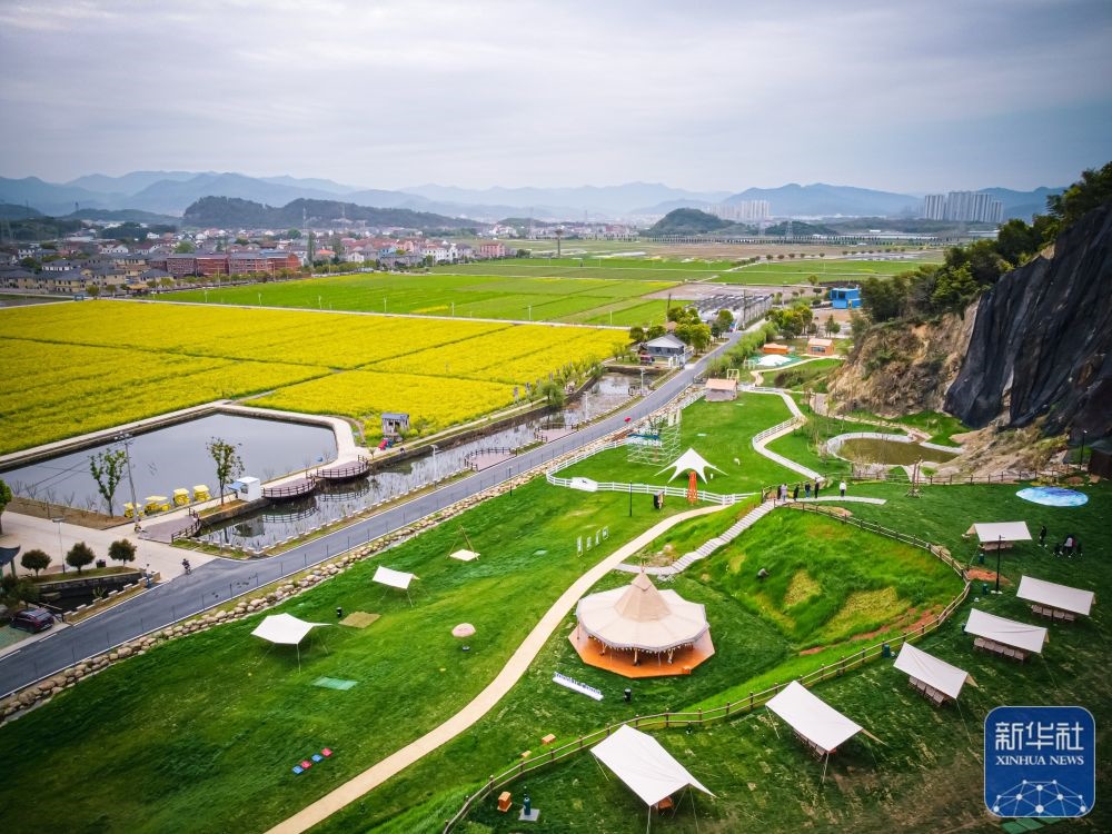 4月11日拍攝的浙江湖州市吳興區(qū)織里鎮(zhèn)伍浦村漁耕文化園的陶灣里鄉(xiāng)村咖啡店以及鄉(xiāng)村露營地(無人機照片)。近年來,湖州市吳興區(qū)織里鎮(zhèn)依托當?shù)孛利愢l(xiāng)村建設以及自然風光,招引鄉(xiāng)賢返鄉(xiāng)創(chuàng)業(yè),用閑置民宅、閑置土地建設特色咖啡店、花海景觀、特色民宿和農家樂等,做足鄉(xiāng)村旅游經(jīng)濟功課。新華社記者 徐昱 攝