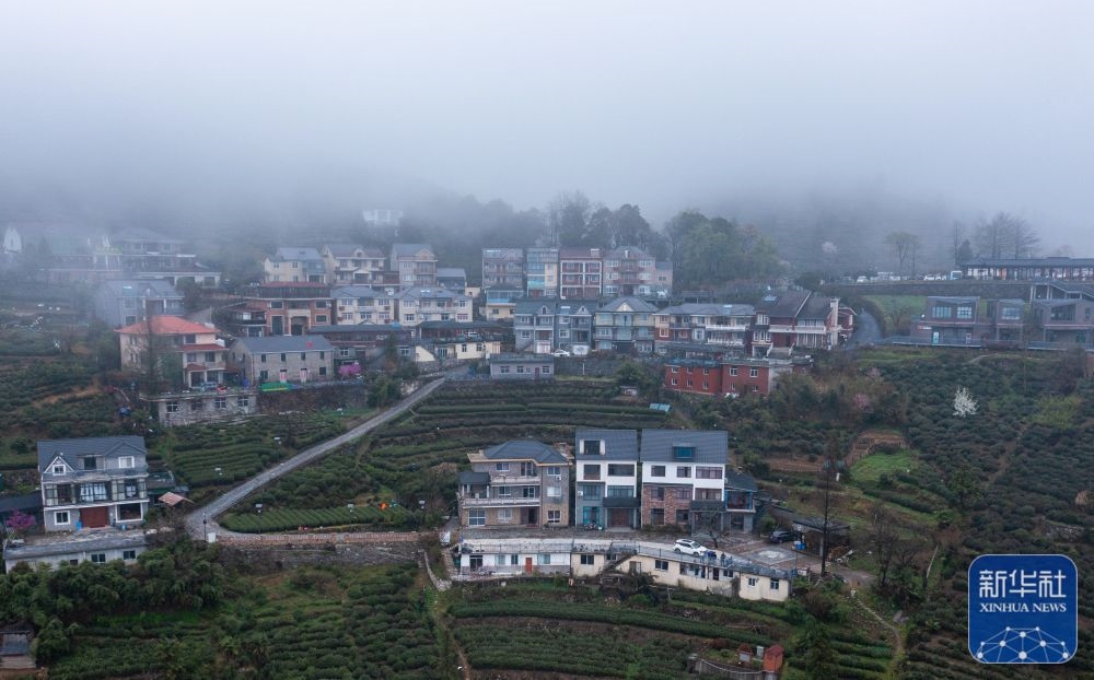 空中俯瞰云霧中的浙江杭州富陽里山鎮(zhèn)安頂村(3月23日攝,無人機照片)。安頂村海拔700多米,一年中有200多天可觀賞“安頂云海”奇景,當?shù)匕傩找劳懈呱皆旗F茶以及特色鄉(xiāng)村旅游產(chǎn)業(yè),走出了一條茶旅融合的新農村共同富裕發(fā)展模式。新華社記者 徐昱 攝