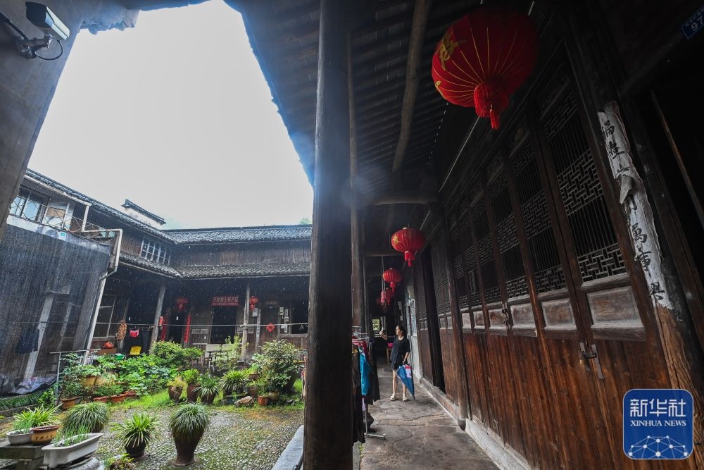 6月8日,游客在浙江諸暨市斯宅村的千柱屋景區(qū)內游覽。近年來,當?shù)貙琶窬咏ㄖM行有效保護和修復,積極弘揚古村落文化特色,打造優(yōu)美人居環(huán)境,實現(xiàn)村莊發(fā)展與歷史文化環(huán)境的融合。新華社記者 徐昱 攝