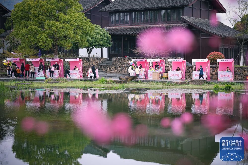 游客在浙江杭州丁蘭街道皋城村的桃園內游園賞花(3月25日攝)。近年來,杭州丁蘭街道皋城村在改善村容村貌、建設美麗鄉(xiāng)村的基礎上發(fā)展鄉(xiāng)村旅游業(yè),促進鄉(xiāng)村文旅融合。新華社記者 江漢 攝