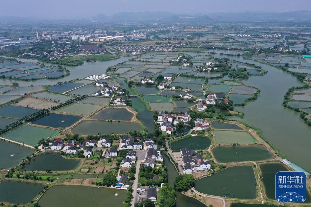 6月9日拍攝的浙江湖州市南潯區(qū)和孚鎮(zhèn)新荻村(無人機照片)。近年來,新荻村大力發(fā)展水文化、漁文化、菱文化,結合自身特色發(fā)展休閑鄉(xiāng)村旅游,打造美麗鄉(xiāng)村升級版。新華社記者 黃宗治 攝