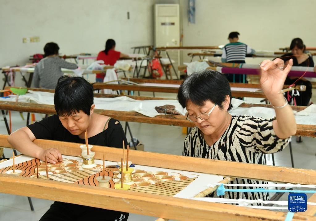 河北省肅寧縣邵莊鄉(xiāng)東高家口村的戲曲服裝服飾制作技藝至今已傳承百余年,2017年被列入滄州市市級(jí)非物質(zhì)文化遺產(chǎn)名錄。近年來,當(dāng)?shù)卦谕七M(jìn)產(chǎn)業(yè)富民的過程中,積極推進(jìn)傳統(tǒng)技藝與現(xiàn)代工業(yè)生產(chǎn)有機(jī)融合,成立、引進(jìn)服裝加工企業(yè),為100多名當(dāng)?shù)亓羰貗D女提供就業(yè)崗位,在促進(jìn)居民增收的同時(shí),推動(dòng)了傳統(tǒng)非遺的傳承。新華社記者 牟宇 攝
