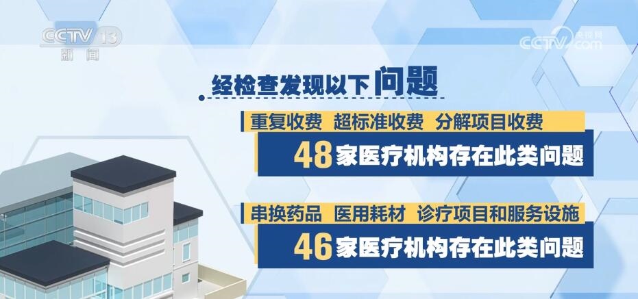 國(guó)家飛檢組共抽查了48家定點(diǎn)醫(yī)療機(jī)構(gòu),包括三級(jí)公立醫(yī)院40家、三級(jí)民營(yíng)醫(yī)院3家、二級(jí)以下民營(yíng)醫(yī)療機(jī)構(gòu)5家,經(jīng)檢查發(fā)現(xiàn)以下問(wèn)題:一、重復(fù)收費(fèi)、超標(biāo)準(zhǔn)收費(fèi)、分解項(xiàng)目收費(fèi),48家醫(yī)療機(jī)構(gòu)存在此類問(wèn)題。二、串換藥品、醫(yī)用耗材、診療項(xiàng)目和服務(wù)設(shè)施,46家醫(yī)療機(jī)構(gòu)存在此類問(wèn)題。三、將不屬于醫(yī)?;鹬Ц斗秶尼t(yī)藥費(fèi)用納入醫(yī)保基金結(jié)算,43家醫(yī)療機(jī)構(gòu)存在此類問(wèn)題。四、違反診療規(guī)范過(guò)度診療、過(guò)度檢查、超量開(kāi)藥,39家醫(yī)療機(jī)構(gòu)存在此類問(wèn)題。此外,部分醫(yī)療機(jī)構(gòu)存在分解住院,藥品、醫(yī)用耗材進(jìn)銷存不符,未嚴(yán)格執(zhí)行國(guó)家組織藥品耗材集中帶量采購(gòu)政策,按病種付費(fèi)模式下高靠病組、低標(biāo)準(zhǔn)入院等其他違法違規(guī)問(wèn)題;一些醫(yī)療機(jī)構(gòu)存在虛構(gòu)醫(yī)藥服務(wù)項(xiàng)目問(wèn)題。