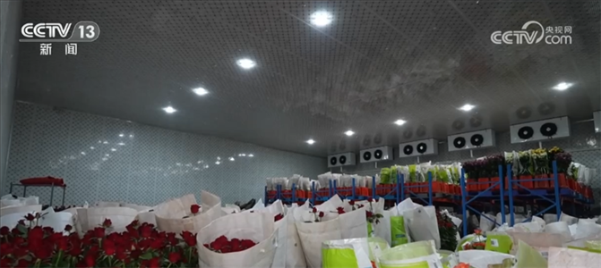 安寧諾斯沃德花卉產(chǎn)業(yè)有限公司副總經(jīng)理 王子西:這個(gè)溫度是一個(gè)4℃—6℃的冷環(huán)境,鮮花如果帶有田間熱,它的開(kāi)放速度是非??斓模栽谶@個(gè)車(chē)間里,通過(guò)這樣的冷環(huán)境減緩它的開(kāi)放速度,叫作休眠,讓我們的鮮花有更多的時(shí)間留到下一個(gè)環(huán)節(jié)進(jìn)行加工、物流和處理。