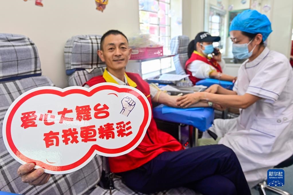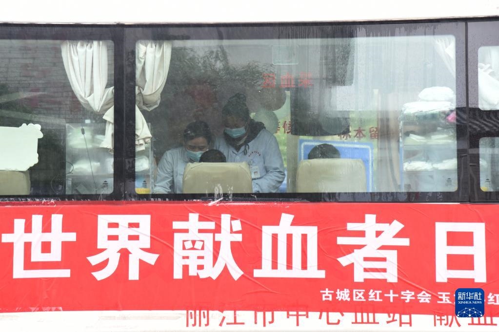 6月14日,市民在云南省麗江市祥和商業(yè)廣場(chǎng)的流動(dòng)獻(xiàn)血車內(nèi)獻(xiàn)血。 新華社發(fā)(趙慶祖攝)