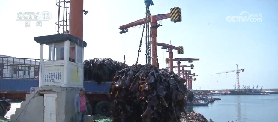 在大連旅順口區(qū)龍頭街道郭家溝海域,漁民們都在忙著出海、打撈,滿載海帶回港之后,直接就運往附近的加工廠,加工成一袋袋即食海帶產(chǎn)品。今年的海帶成色和產(chǎn)量都不錯,大家都獲得了好收成。