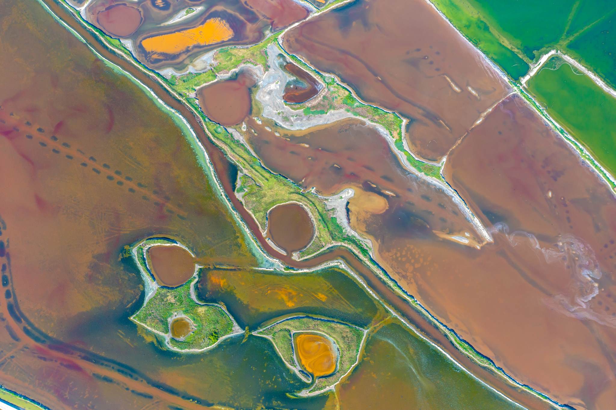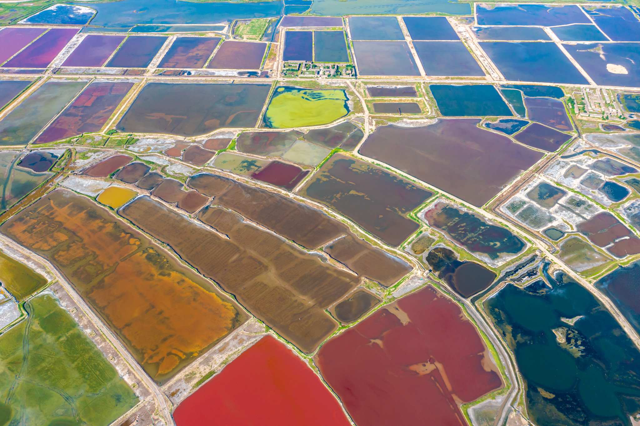 2023年6月14日,山西運城,七彩鹽湖呈現(xiàn)出色彩斑斕的景觀,猶如大地調色板,美不勝收。視覺中國
