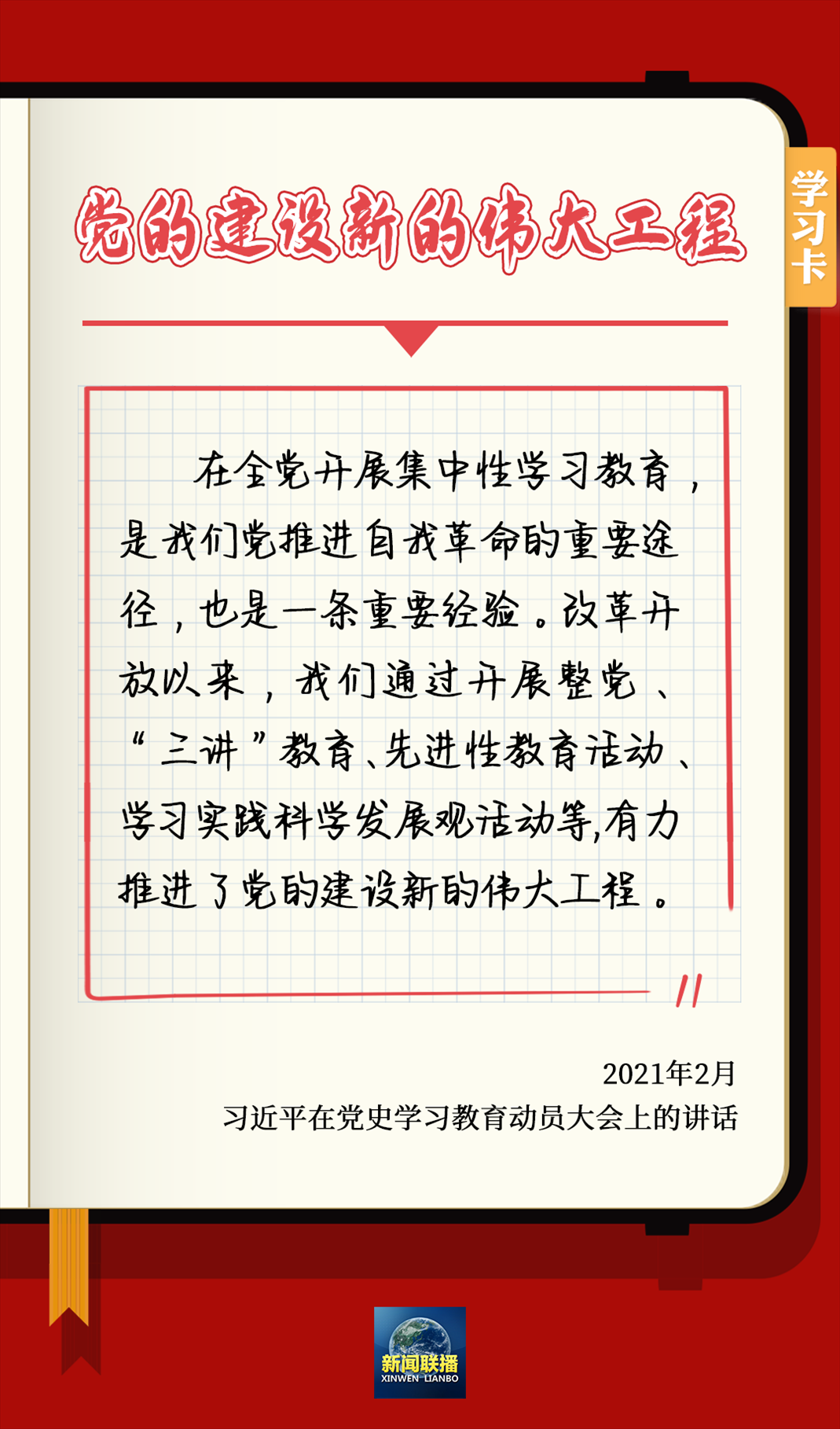 6月16日出版的《求是》雜志發(fā)表習(xí)近平的重要文章強(qiáng)調(diào),把黨的建設(shè)作為一項偉大工程來推進(jìn),是立黨立國、興黨強(qiáng)國的一大法寶。新時代10年,我們把思想建設(shè)作為黨的基礎(chǔ)性建設(shè),持續(xù)開展黨內(nèi)集中教育,使黨員、干部補(bǔ)足精神之鈣,堅守共產(chǎn)黨人精神家園。