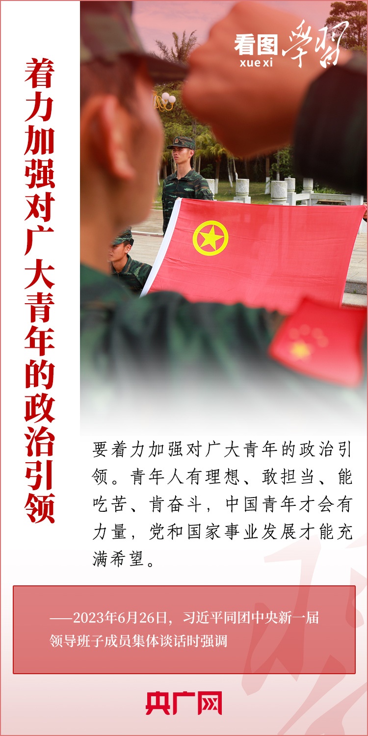 6月26日,習(xí)近平總書記同團(tuán)中央新一屆領(lǐng)導(dǎo)班子成員集體談話并發(fā)表重要講話,對共青團(tuán)中央切實肩負(fù)起新時代新征程黨賦予的使命任務(wù),更好把青年一代團(tuán)結(jié)凝聚在黨的周圍提出殷切希望。一起來學(xué)習(xí)!