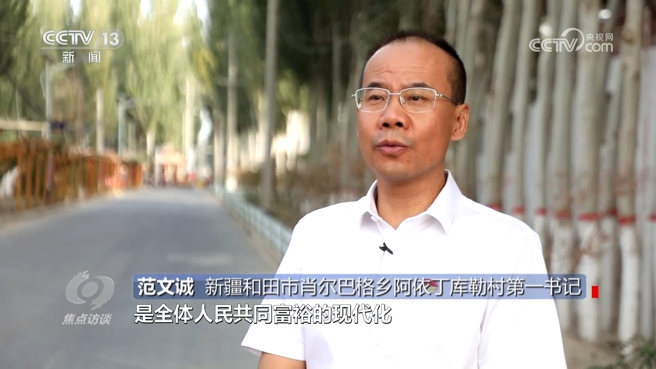 新疆和田市肖爾巴格鄉(xiāng)阿依丁庫勒村第一書記范文誠:“中國式現(xiàn)代化是人口規(guī)模巨大的現(xiàn)代化,是全體人民共同富裕的現(xiàn)代化,將理論聯(lián)系當(dāng)前的農(nóng)村實(shí)際相切合,要始終堅(jiān)持從人民出發(fā)、從實(shí)際出發(fā),分類確定建設(shè)發(fā)展模式、特色產(chǎn)業(yè)?!?/p>