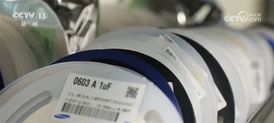 達豐(重慶)電腦有限公司資深經(jīng)理 劉洪亮:這就是我們即將要投到生產(chǎn)線上去生產(chǎn)的材料,因為它是SMT工藝流程的貼片技術,所以它的材料都是成卷包裝的。這一卷,你看這個數(shù)量,4000個,這個更夸張,一卷1萬個。