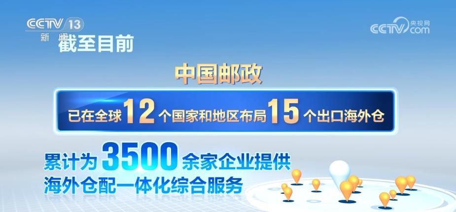截至目前,中國(guó)郵政已在全球12個(gè)國(guó)家和地區(qū)布局了15個(gè)出口海外倉(cāng),累計(jì)為3500余家企業(yè)提供海外倉(cāng)配一體化綜合服務(wù)。
