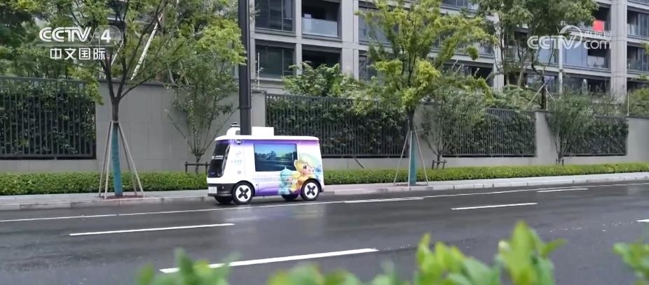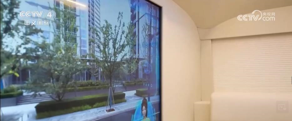 總臺記者 黃珊:亞運村里的AR智能巴士在全自動巡航狀態(tài)下,能為乘客提供接駁、講解的服務。正前方的特殊窗戶結(jié)合車載AR功能,透過它能夠看到車外的實時影像,結(jié)合虛擬場景,虛實結(jié)合,非常奇妙。