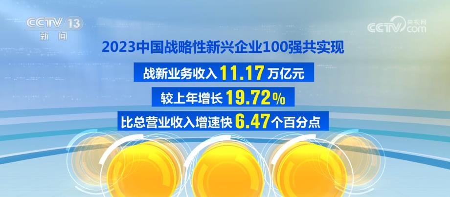 記者從榜單上了解到,新一代信息技術(shù)、新材料、新能源、高端裝備制造等戰(zhàn)略性新興業(yè)務(wù)快速發(fā)展。2023中國(guó)戰(zhàn)略性新興企業(yè)100強(qiáng)共實(shí)現(xiàn)戰(zhàn)新業(yè)務(wù)收入11.17萬(wàn)億元,較上年增長(zhǎng)19.72%,比總營(yíng)業(yè)收入增速快6.47個(gè)百分點(diǎn)。