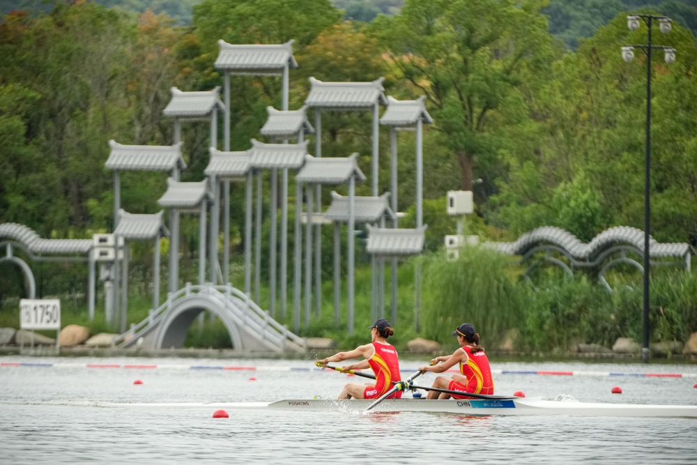 9月20日,杭州亞運(yùn)會(huì)賽艇項(xiàng)目預(yù)賽比賽在浙江省杭州市富陽水上運(yùn)動(dòng)中心開賽。新華社記者 江漢 攝
