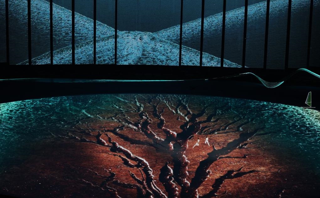 裸眼3D、AR數字穹頂、3D雙威亞、流體計算和185米寬、15米高的網幕等技術,實現(xiàn)了立體美學和東方美學的融合,也實現(xiàn)了技術和藝術的雙向奔赴。