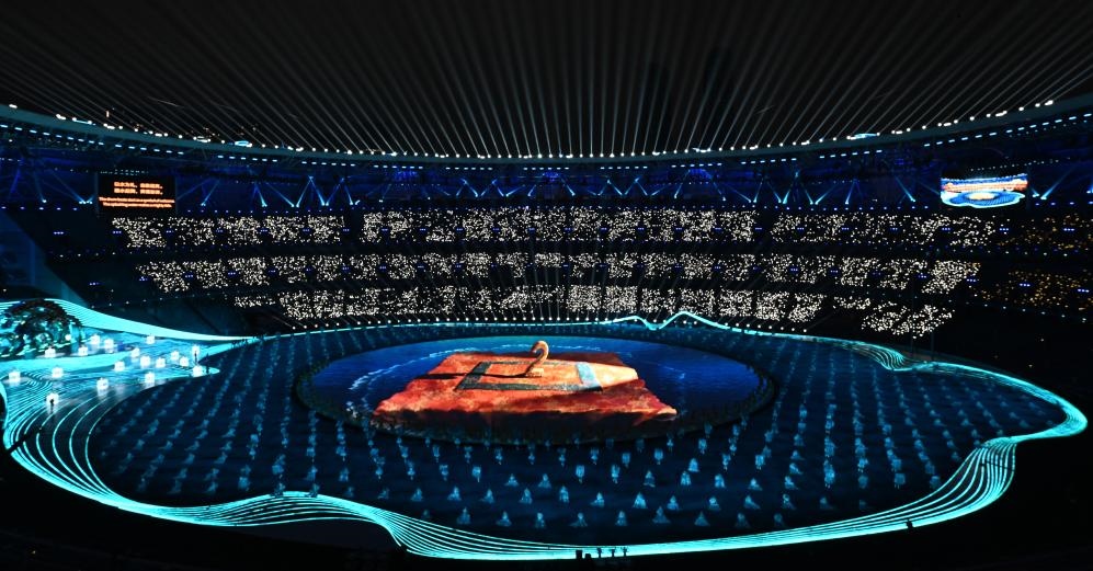 開幕式實現(xiàn)了兩個首創(chuàng):3D雙威亞首次應用于大型運動場,首次采用“數實融合”的點火方式。