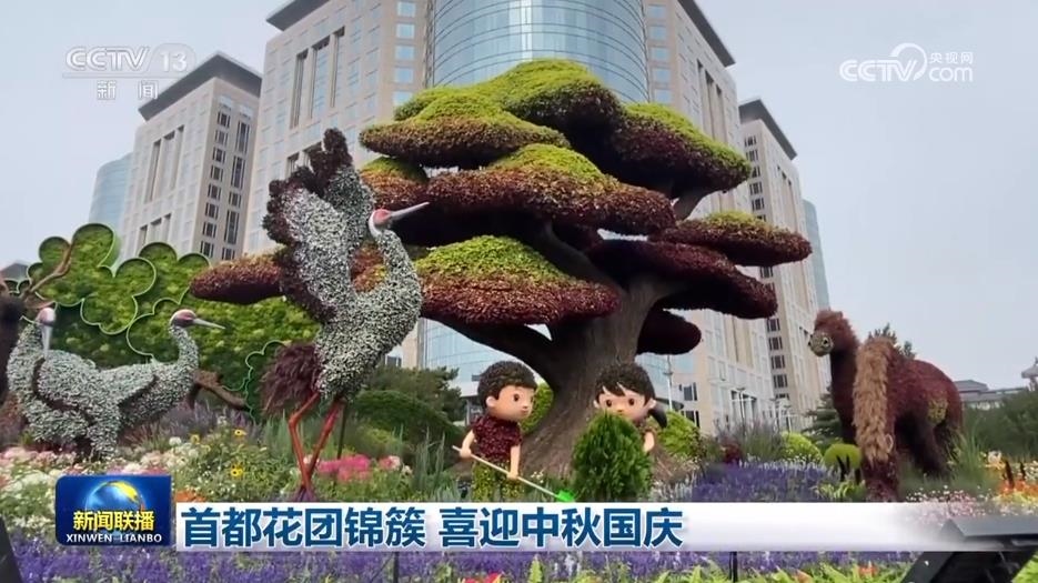央視網(wǎng)消息(新聞聯(lián)播):中秋國慶來臨之際,北京天安門廣場和長安街沿線裝扮一新,“祝福祖國”巨型花籃亮相天安門廣場,一派喜慶的節(jié)日氣氛。