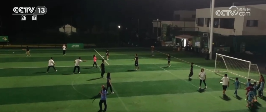 總臺記者 李欣蔓:新港村足球場占地約26畝,包含兩塊標準的11人制足球場。五六年前,這里還是一片被騰退的低小散企業(yè)所剩下的老廠房。2019年,村里建起了第一塊專業(yè)的運動場地。2023年以來,這里已經(jīng)承接了35場足球賽,各類包場活動達到80多次。除了承接活動和比賽,這塊場地還免費向村民和散客開放。