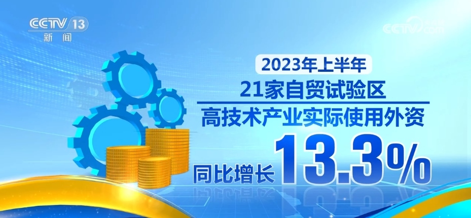 數(shù)據(jù)顯示,2022年,21個(gè)自貿(mào)試驗(yàn)區(qū)以只占全國不到4‰的國土面積,實(shí)現(xiàn)了占全國18.41%的外商投資和17.9%的進(jìn)出口。2023年上半年,21家自貿(mào)試驗(yàn)區(qū)高技術(shù)產(chǎn)業(yè)實(shí)際使用外資同比增長13.3%。