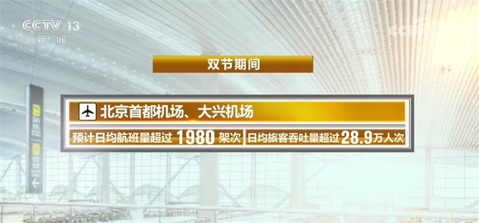 ?????? 民航方面,“雙節(jié)”期間,北京首都機(jī)場(chǎng)、大興機(jī)場(chǎng)預(yù)計(jì)日均航班量超過1980架次,日均旅客吞吐量超過28.9萬人次。