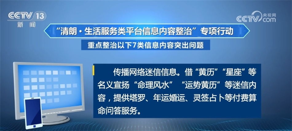 此次專項行動覆蓋團購評價、婚戀交友、搜索引擎、影視點評、天氣日歷、旅游出行、網(wǎng)絡(luò)購物、地圖導(dǎo)航、本地生活、運動健康、實用工具等各類生活服務(wù)平臺,重點整治以下7類信息內(nèi)容突出問題?! ?/p>