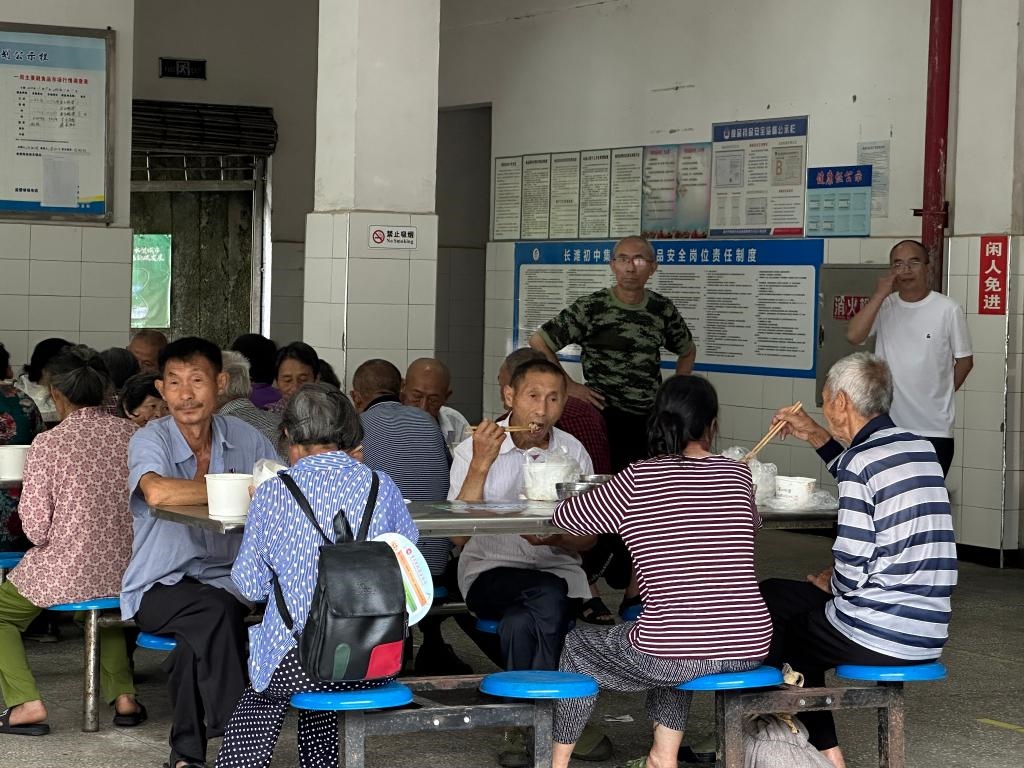 近13時(shí),食堂里已人聲鼎沸,數(shù)十名村民正在用餐?;ú顺慈?、熗炒土豆片、蛋花湯……兩葷一素、三菜一湯的配置,讓從土門村轉(zhuǎn)移到安置點(diǎn)的村民劉貴蘭挺滿意:“早上吃的是牛奶、饅頭、包子,晚上也是三菜一湯。”