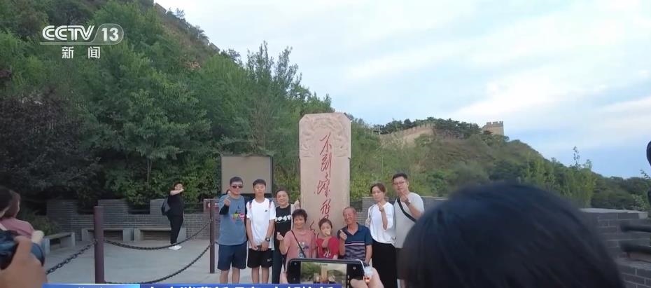 乘坐纜車幾分鐘后,記者就抵達(dá)了八達(dá)嶺長(zhǎng)城的南四樓,長(zhǎng)城的壯麗景象盡收眼底。伴隨著夕陽(yáng)余暉,游客們俯瞰長(zhǎng)城隨山巒起伏,很多人在“不到長(zhǎng)城非好漢”的標(biāo)記處打卡拍照。
