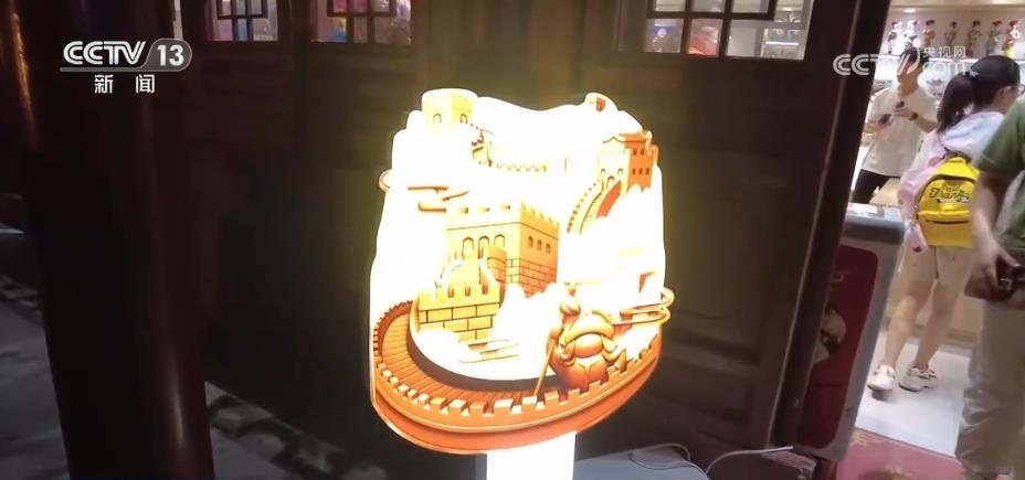 除了觀賞之外,八達(dá)嶺長(zhǎng)城還為游客提供了豐富的消費(fèi)體驗(yàn)。在文化街區(qū)里,正在上演《夢(mèng)回長(zhǎng)城,八方來(lái)鶴》為主題的演出,游客們可以和京劇、地方歌舞的表演者互動(dòng)。絢爛的燈光表演則為古老的長(zhǎng)城增添了不少現(xiàn)代感與時(shí)尚感。穿上漢服,買一面國(guó)旗,品嘗一下長(zhǎng)城的文創(chuàng)雪糕,市集小店里洋溢著濃濃的煙火氣。