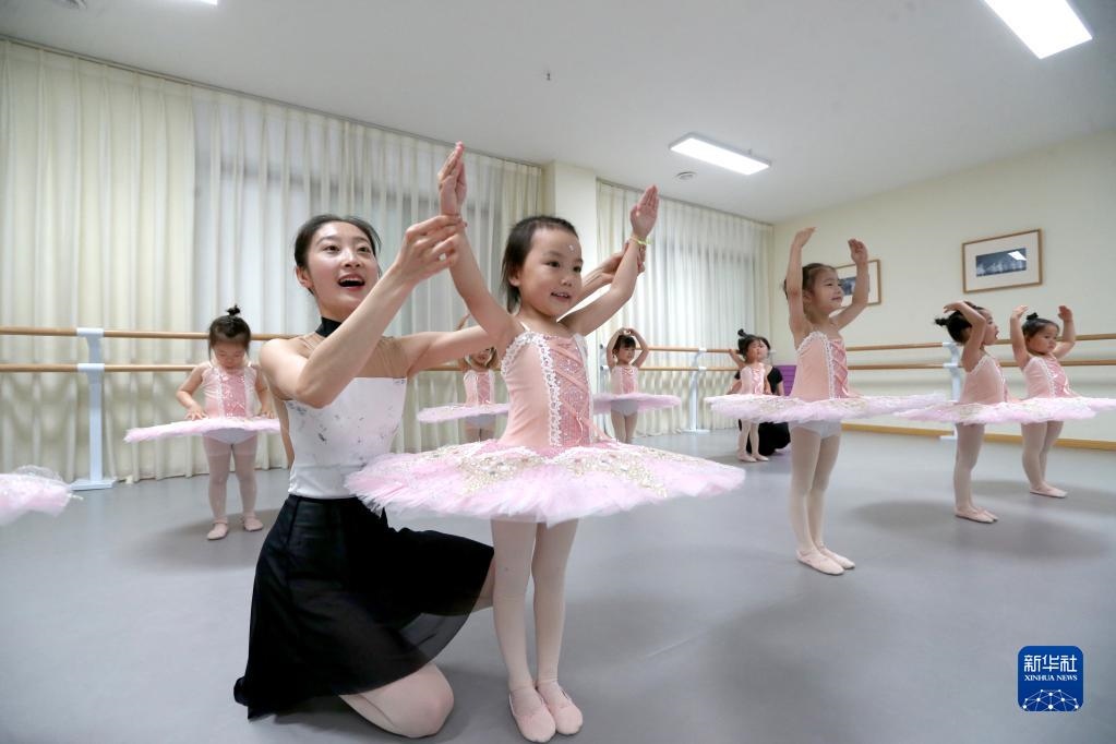 7月7日,在四川省眉山市東坡區(qū),兒童在少年宮公益托管班學(xué)習(xí)舞蹈。