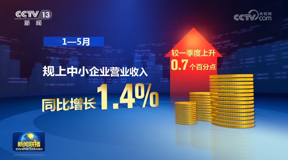 1—5月,規(guī)上中小企業(yè)營(yíng)業(yè)收入同比增長(zhǎng)1.4%,較一季度上升0.7個(gè)百分點(diǎn)。1—5月,“小巨人”、專精特新企業(yè)營(yíng)收利潤(rùn)率分別為9.9%、7.1%,比規(guī)上工業(yè)企業(yè)分別高4.7個(gè)、1.9個(gè)百分點(diǎn)。