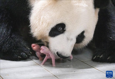 據(jù)韓國京畿道龍仁市愛寶樂園介紹,旅韓大熊貓“愛寶(華妮)”于7月7日清晨順利產(chǎn)下一對(duì)雌性雙胞胎幼崽。這是旅韓大熊貓“愛寶(華妮)”和“樂寶(園欣)”繼2020年誕下“福寶”后在韓國再次自然交配并誕下幼崽。