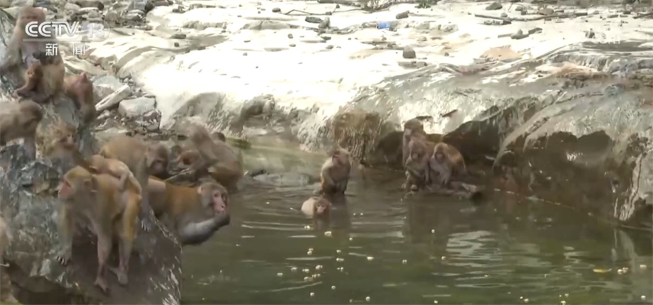 管理員介紹,假如獼猴群棲息地附近沒有水源,保護(hù)區(qū)就會人為設(shè)置水池,從山下通過泵站把水抽上來,供獼猴消夏解暑。