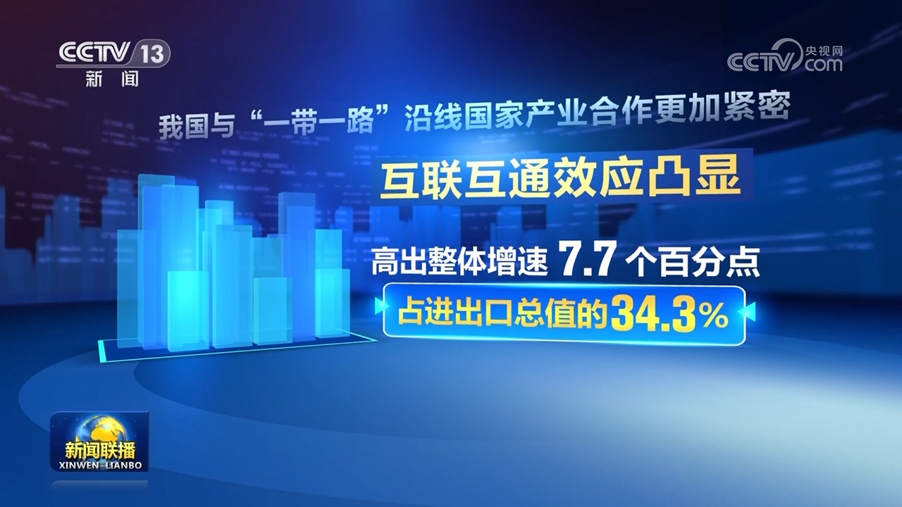 我國與“一帶一路”沿線國家產業(yè)合作更加緊密,互聯(lián)互通效應凸顯,進出口同比增長9.8%,高出整體增速7.7個百分點,占進出口總值的34.3%。