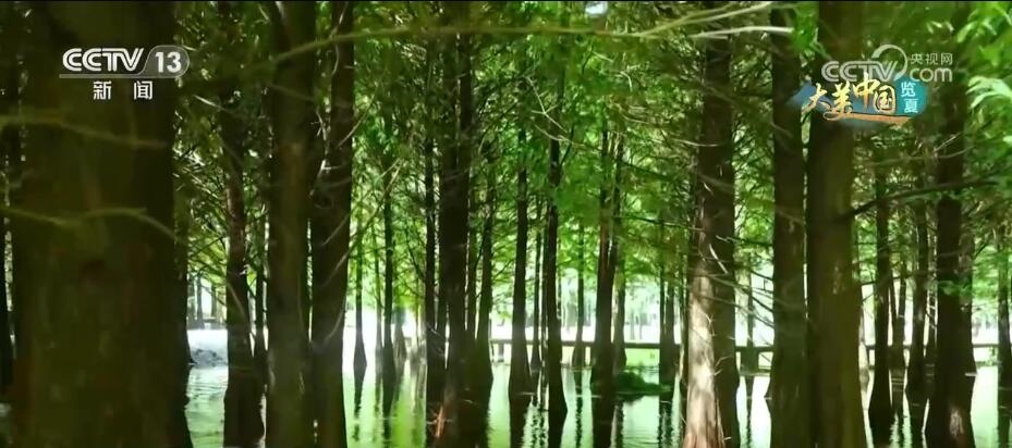 跟隨鏡頭,我們來到江蘇常州新龍生態(tài)林的“水上森林”,滿目蔥蘢、綠意蕩漾。5000多株水杉高大挺拔,陽光從樹林縫隙間灑落,樹下波光粼粼、層層疊疊,置身其中多了分沉靜和清涼。據(jù)了解,新龍生態(tài)林是一處再生水利用工程所在地,自建成運(yùn)行以來,已累計(jì)分流凈化中水約2億噸,為保護(hù)長江常州水源地和節(jié)約城市用水作出貢獻(xiàn)。