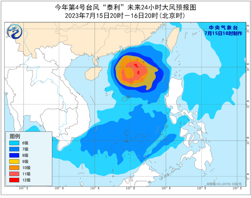 中央氣象臺(tái)7月15日10時(shí)發(fā)布臺(tái)風(fēng)藍(lán)色預(yù)警,中國(guó)氣象局11時(shí)啟動(dòng)臺(tái)風(fēng)四級(jí)應(yīng)急響應(yīng)。南海熱帶低壓已于15日上午加強(qiáng)為今年第4號(hào)臺(tái)風(fēng)“泰利”,根據(jù)中央氣象臺(tái)最新預(yù)報(bào),臺(tái)風(fēng)“泰利”未來還將迅速增強(qiáng),預(yù)計(jì)將于17日夜間在海南島東部到廣東西部一帶沿海登陸,或?qū)⒊蔀榻衲晔讉€(gè)登陸我國(guó)的臺(tái)風(fēng)。
