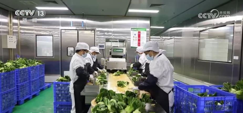 為保證蔬菜新鮮度,在江西尋烏縣,菜農(nóng)調(diào)整蔬菜采摘時(shí)間,選擇晚上或早晨采摘。采摘的蔬菜會(huì)立即送往智能冷鏈物流倉(cāng)庫(kù),進(jìn)行保鮮處理。