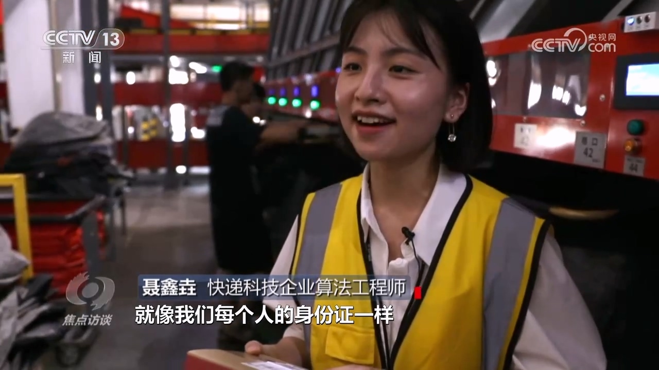 快遞科技企業(yè)算法工程師聶鑫垚:“像這一票件它都有自己的面單,就像我們每個人的身份證一樣,然后上面有一維碼,還有二維碼。當快遞經(jīng)過一個叫六面掃的設(shè)備的時候,就可以把碼掃描出來,這個碼里面會涵蓋快件的生命信息。”