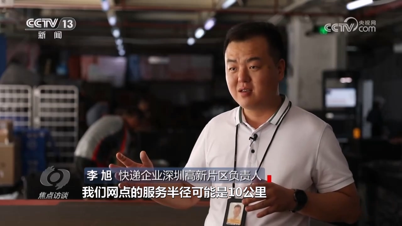 快遞企業(yè)速運深圳高新片區(qū)負責人李旭:“在電子科技化沒有實施的時候,網(wǎng)點服務(wù)半徑比較大,往前推十年,網(wǎng)點服務(wù)半徑可能是10公里,當年10公里服務(wù)半徑和目前2.5公里服務(wù)半徑不一樣,當年的時間段比如每天有1萬單,現(xiàn)在一天5萬單,從服務(wù)半徑來減少小哥的往返距離,提高收派效率?!?/p>