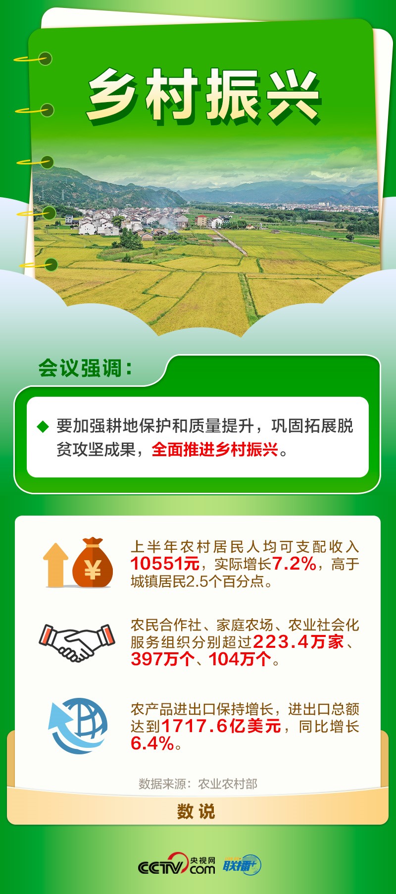 強(qiáng)國(guó)必先強(qiáng)農(nóng),農(nóng)強(qiáng)方能國(guó)強(qiáng)。全面建設(shè)社會(huì)主義現(xiàn)代化國(guó)家,最艱巨最繁重的任務(wù)依然在農(nóng)村,最廣泛最深厚的基礎(chǔ)依然在農(nóng)村。2023年中央一號(hào)文件提出,全面推進(jìn)鄉(xiāng)村振興,加快建設(shè)農(nóng)業(yè)強(qiáng)國(guó)。此次會(huì)議再次提出鞏固拓展脫貧攻堅(jiān)成果,全面推進(jìn)鄉(xiāng)村振興。