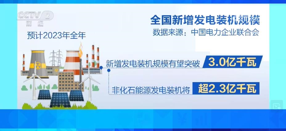 據(jù)預(yù)計(jì),2023年全年,全國(guó)新增發(fā)電裝機(jī)規(guī)模有望突破3.0億千瓦,其中,非化石能源發(fā)電裝機(jī)將超過2.3億千瓦。到2023年底,全國(guó)發(fā)電裝機(jī)容量預(yù)計(jì)將達(dá)到28.6億千瓦,同比增長(zhǎng)11.5%左右。其中,并網(wǎng)風(fēng)電和太陽能發(fā)電合計(jì)裝機(jī)容量將達(dá)到9.6億千瓦,占總裝機(jī)的三分之一。